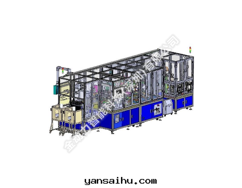 本(běn)設備主(zhǔ)要(yào)用(yòng)于(yú)软包(bāo)锂離子電(diàn)池的(de)鋁(lǚ)塑膜成(chéng)型、頂側封(fēng)、噴碼、检測、包(bāo)膜的(de)批量(liàng)生(shēng)産工藝。實(shí)現(xiàn)祼電(diàn)芯自(zì)動(dòng)吸塑盤上(shàng)料、极耳(ěr)間(jiān)距检測、鋁(lǚ)塑膜自(zì)動(dòng)裁切(qiè)、鋁(lǚ)塑膜自(zì)動(dòng)沖坑、祼電(diàn)芯封(fēng)膜(頂封(fēng)\側封(fēng)\角(jiǎo)封(fēng))、短(duǎn)路(lù)检測、噴碼、不(bù)良品排除、包(bāo)膜、電(diàn)池彈夾出(chū)料等功能(néng)。